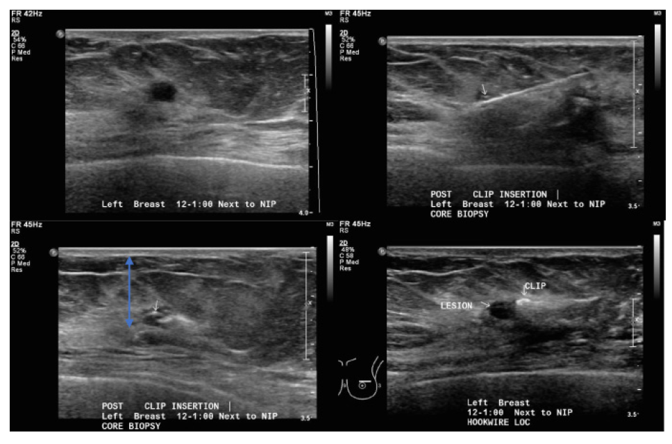 Existing Marker/Clip: Before inserting a new breast marker or clip, check whether the patient already has an existing marker at the intended site. If a marker is present, it is essential to use a clip of a different shape or design to avoid confusion on imaging and to minimise the risk of incorrect preoperative localisation during surgical excision.